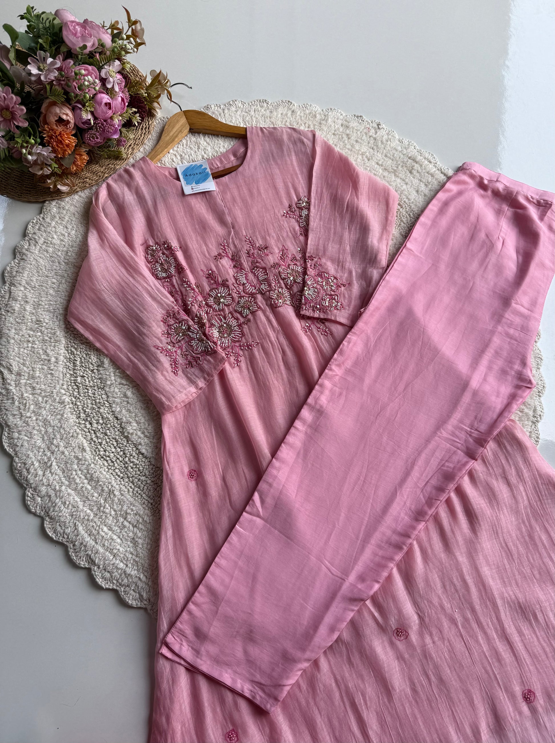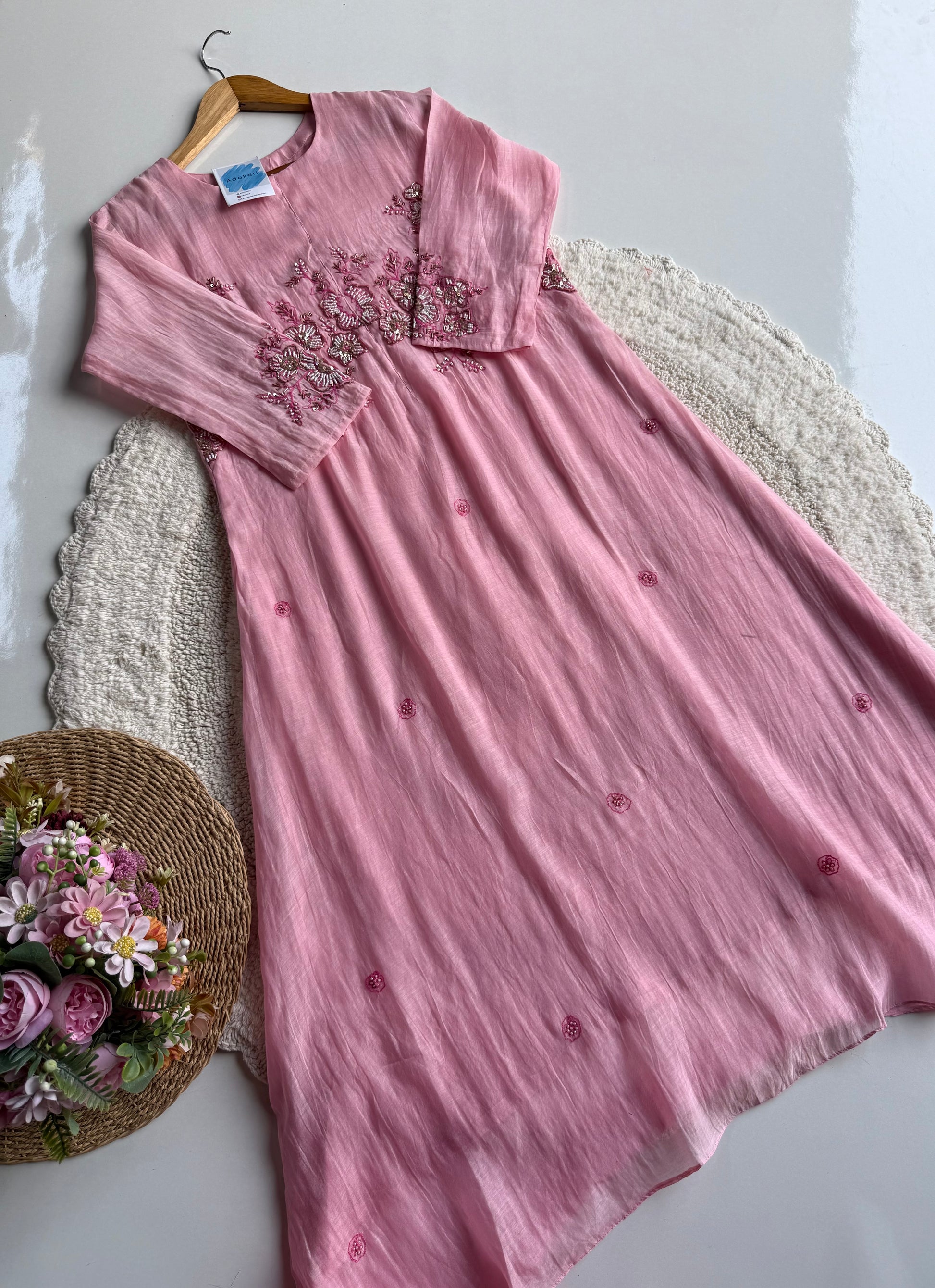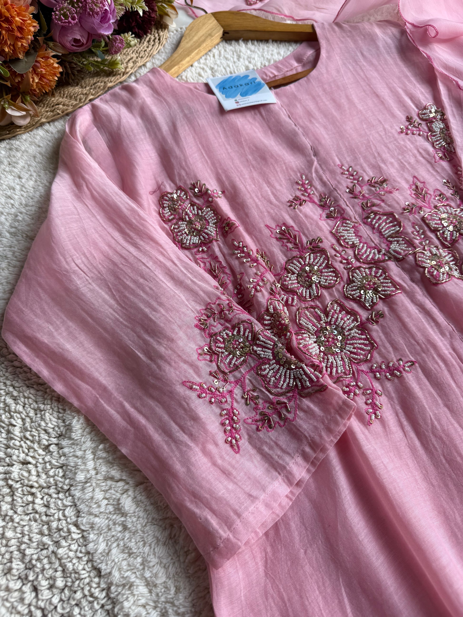 - Top: Mul Chanderi (A-line cut with intricate handwork)