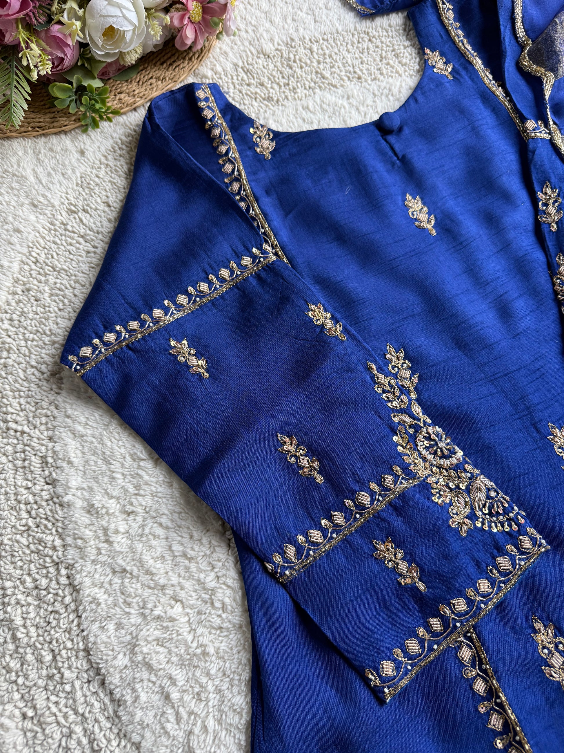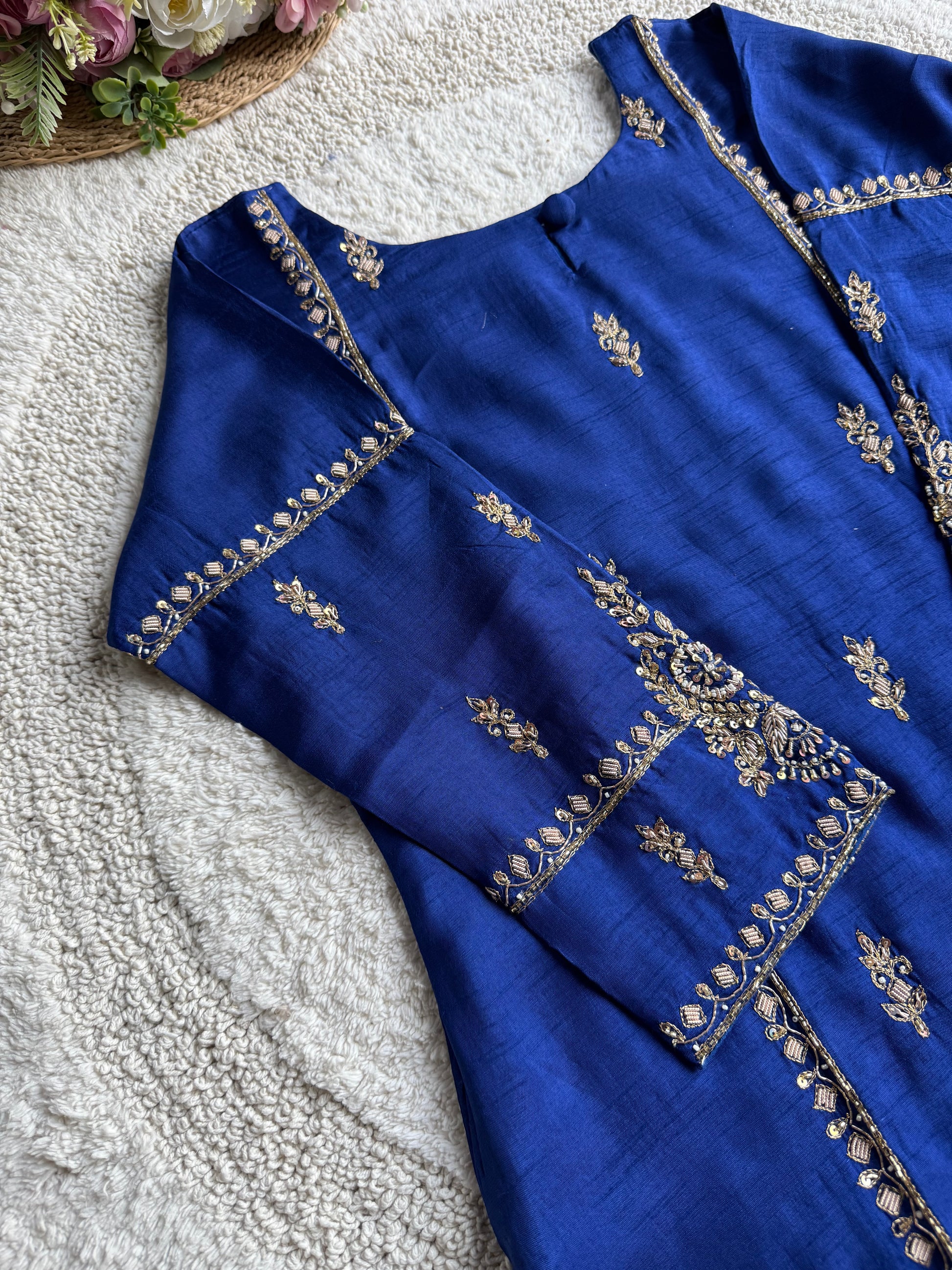 - Work: Intricate handwork on neckline, sleeves & front panel