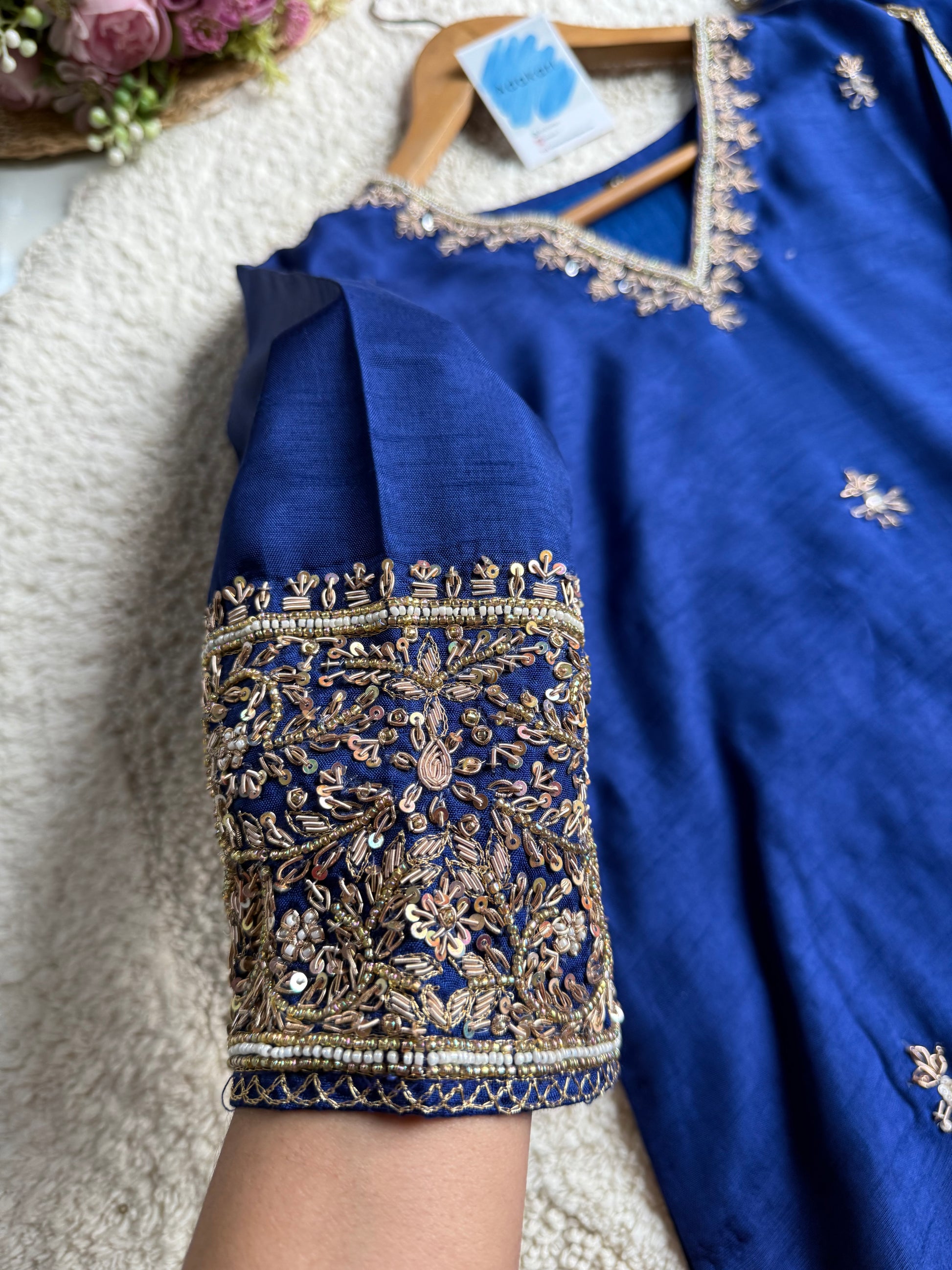 - Sleeves: 3/4th sleeves with full intricate handwork