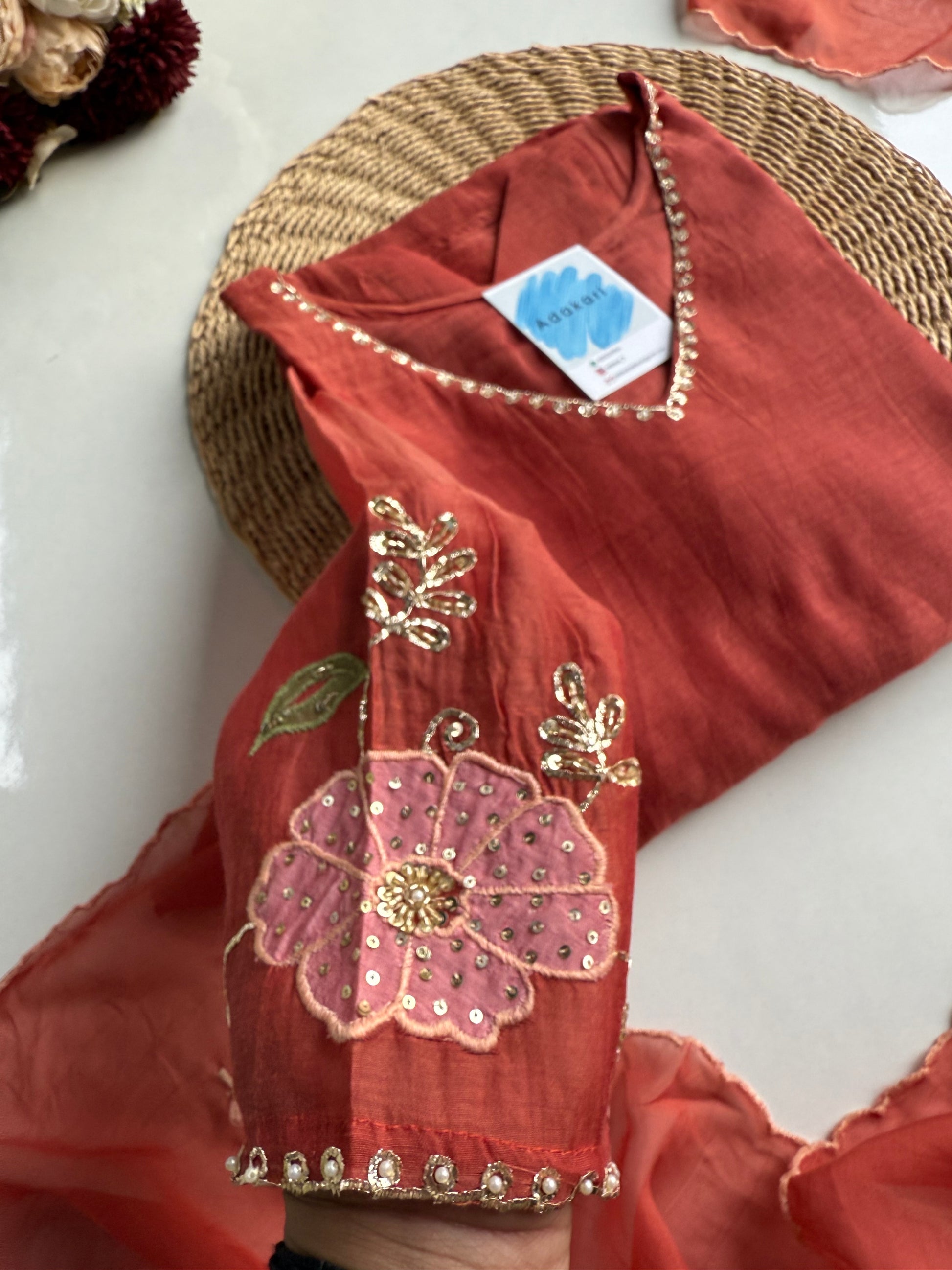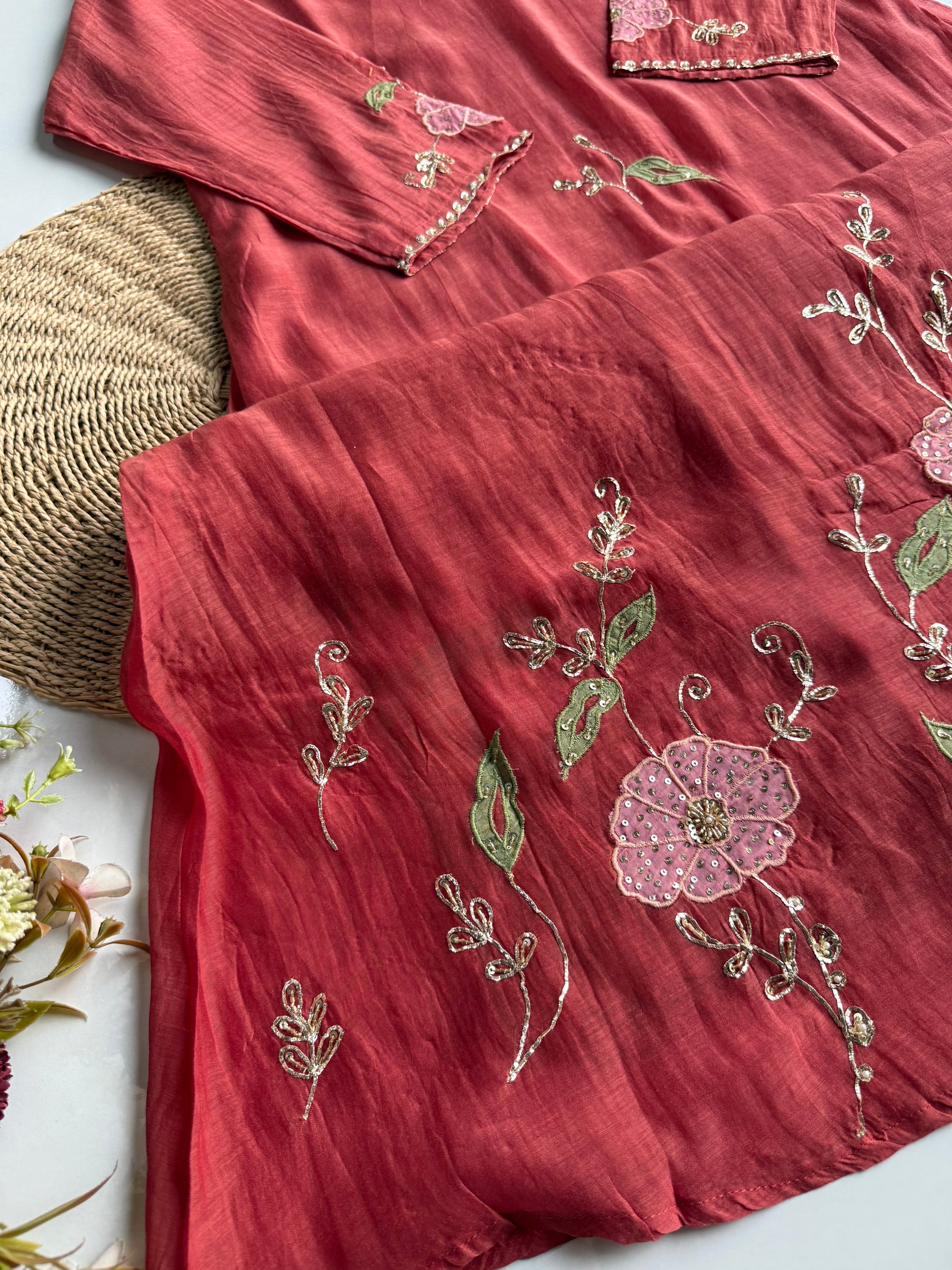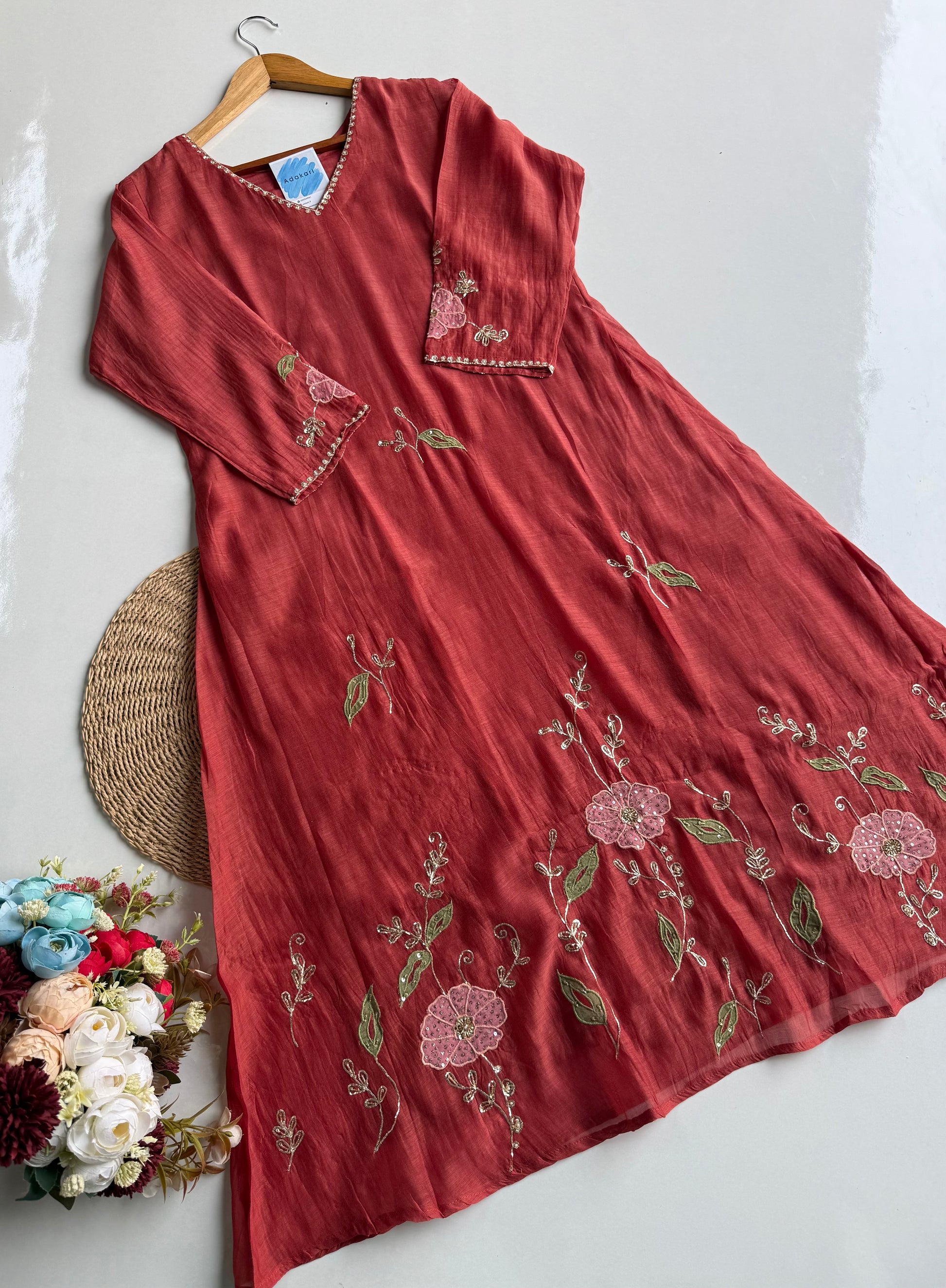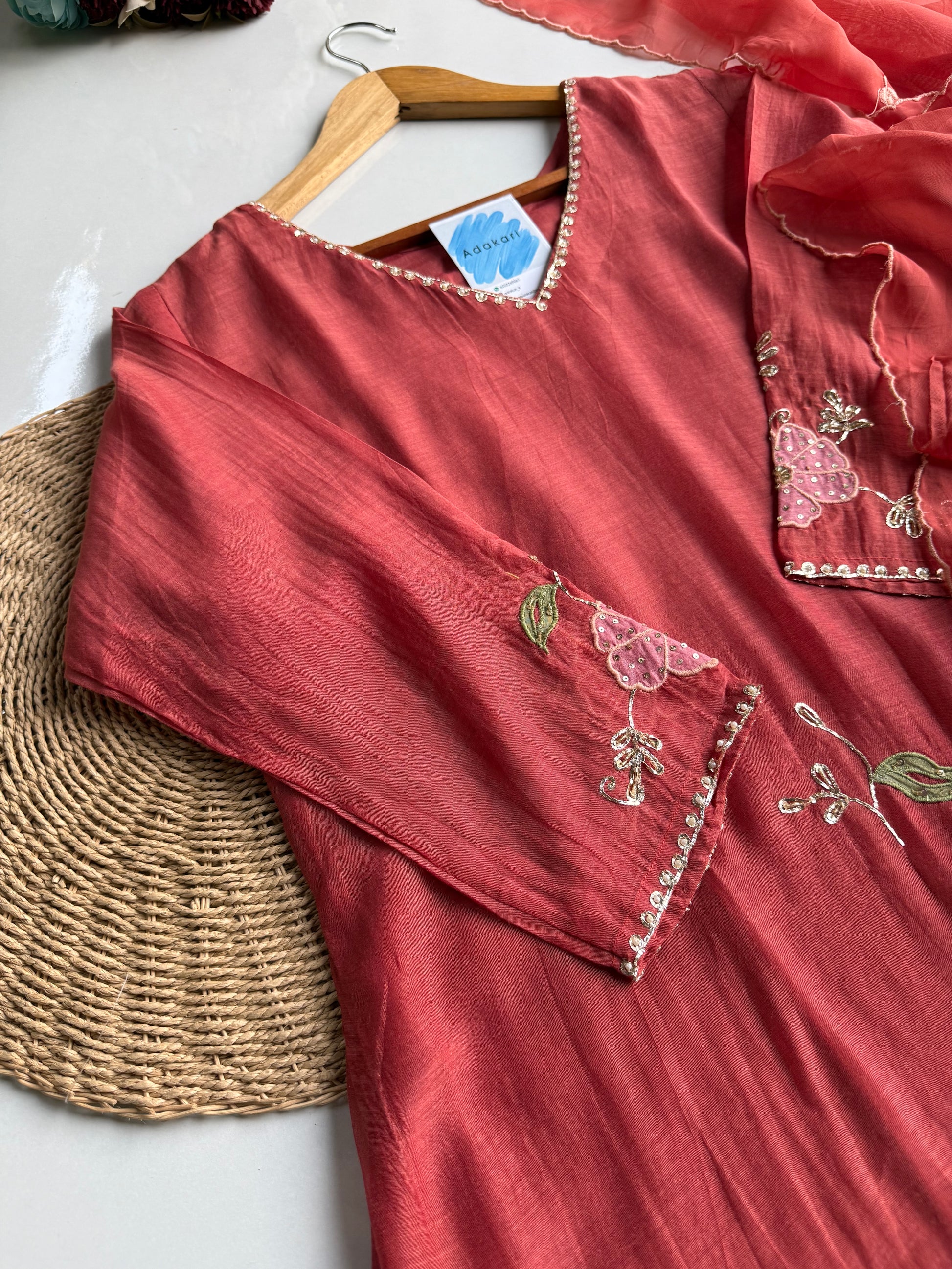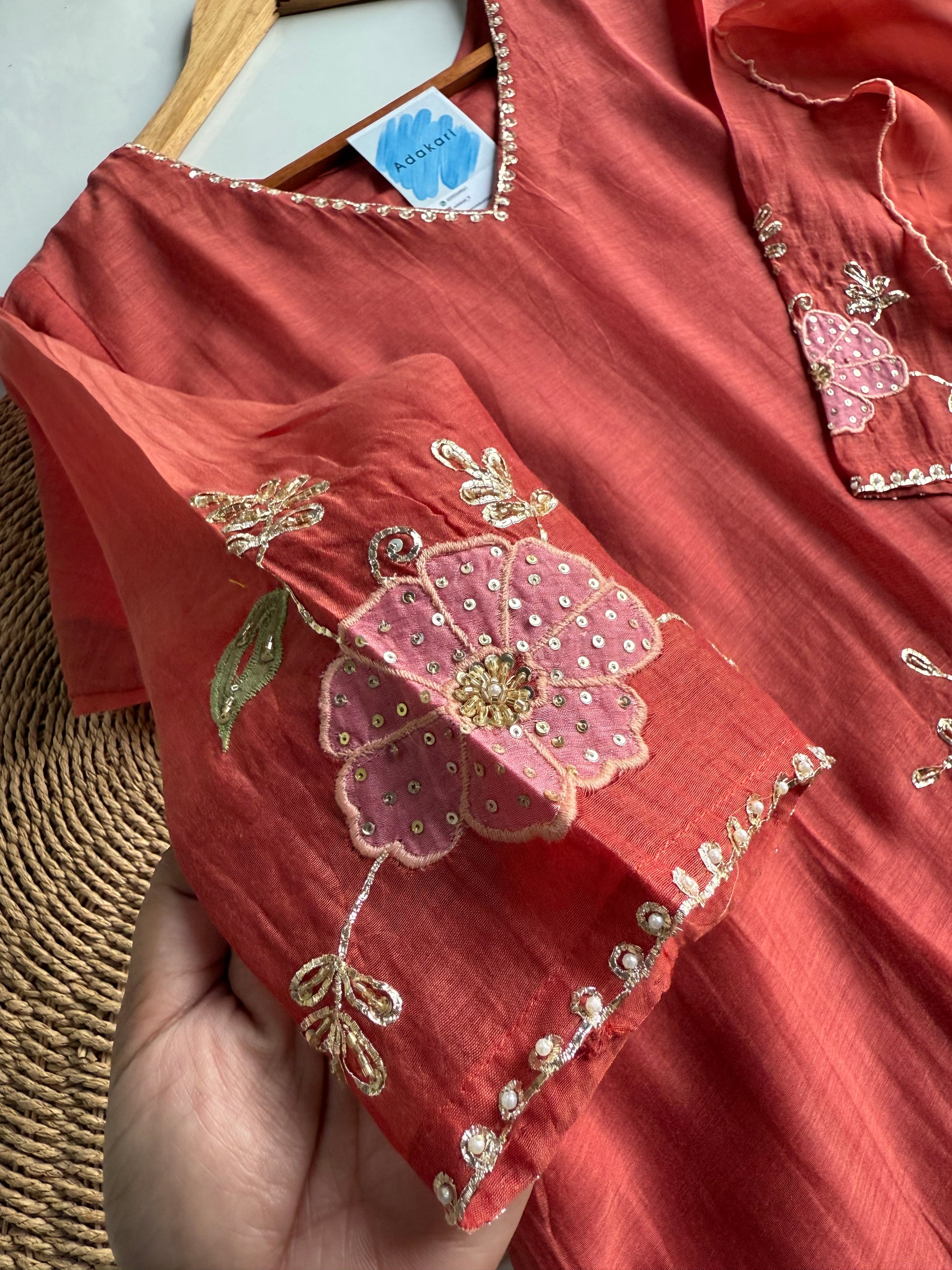 Handcrafted Mulchanderikurtaset With Pitta & Patch Work With Handwork Highlights Over The work