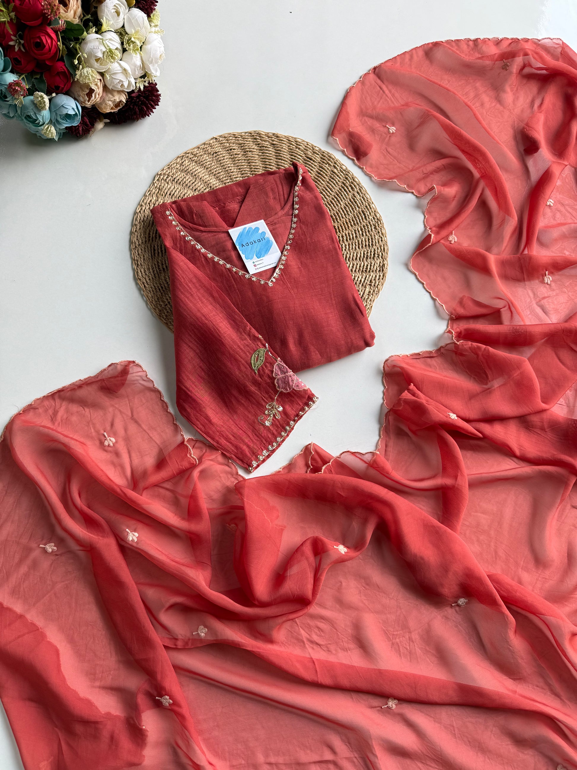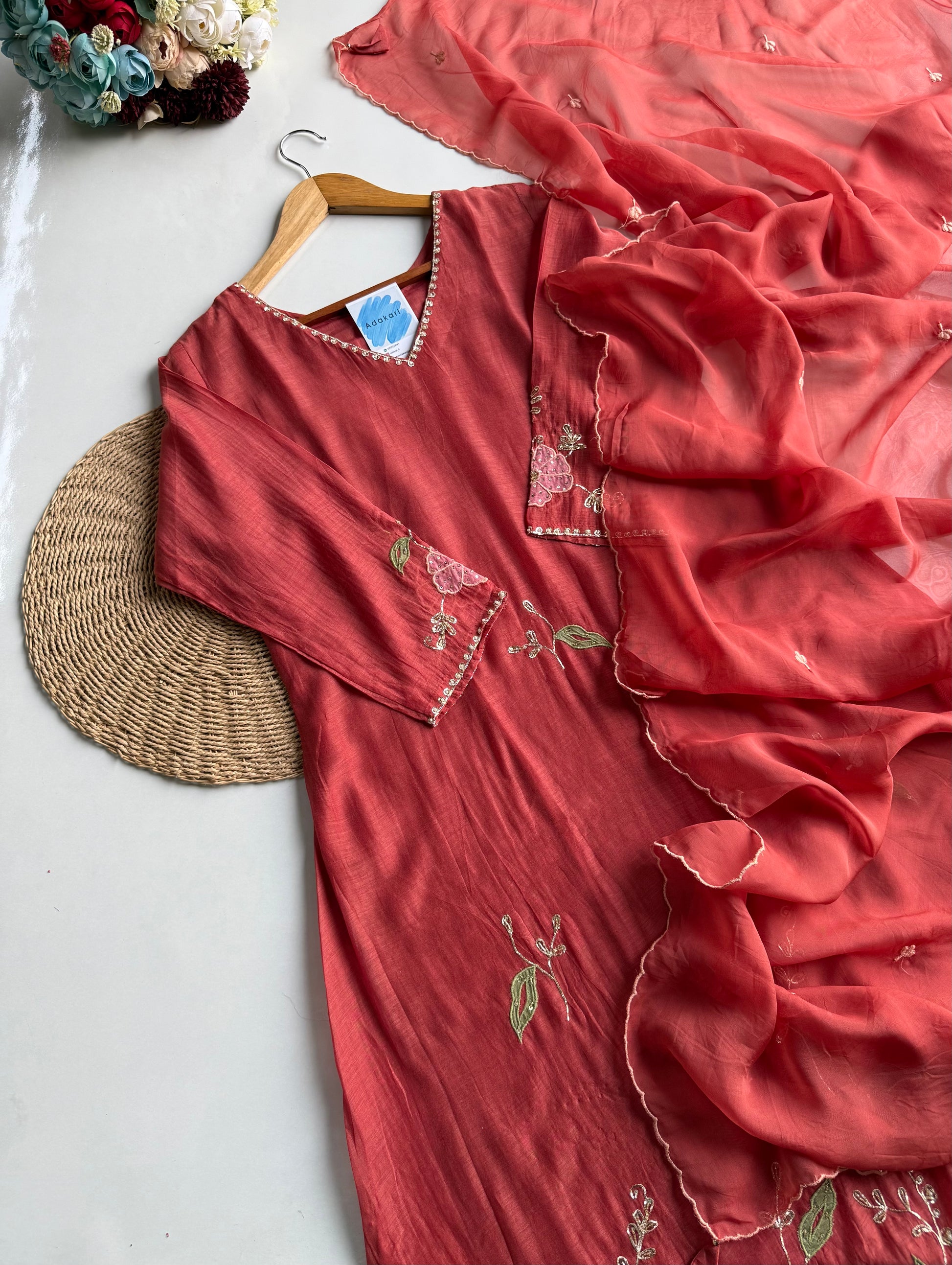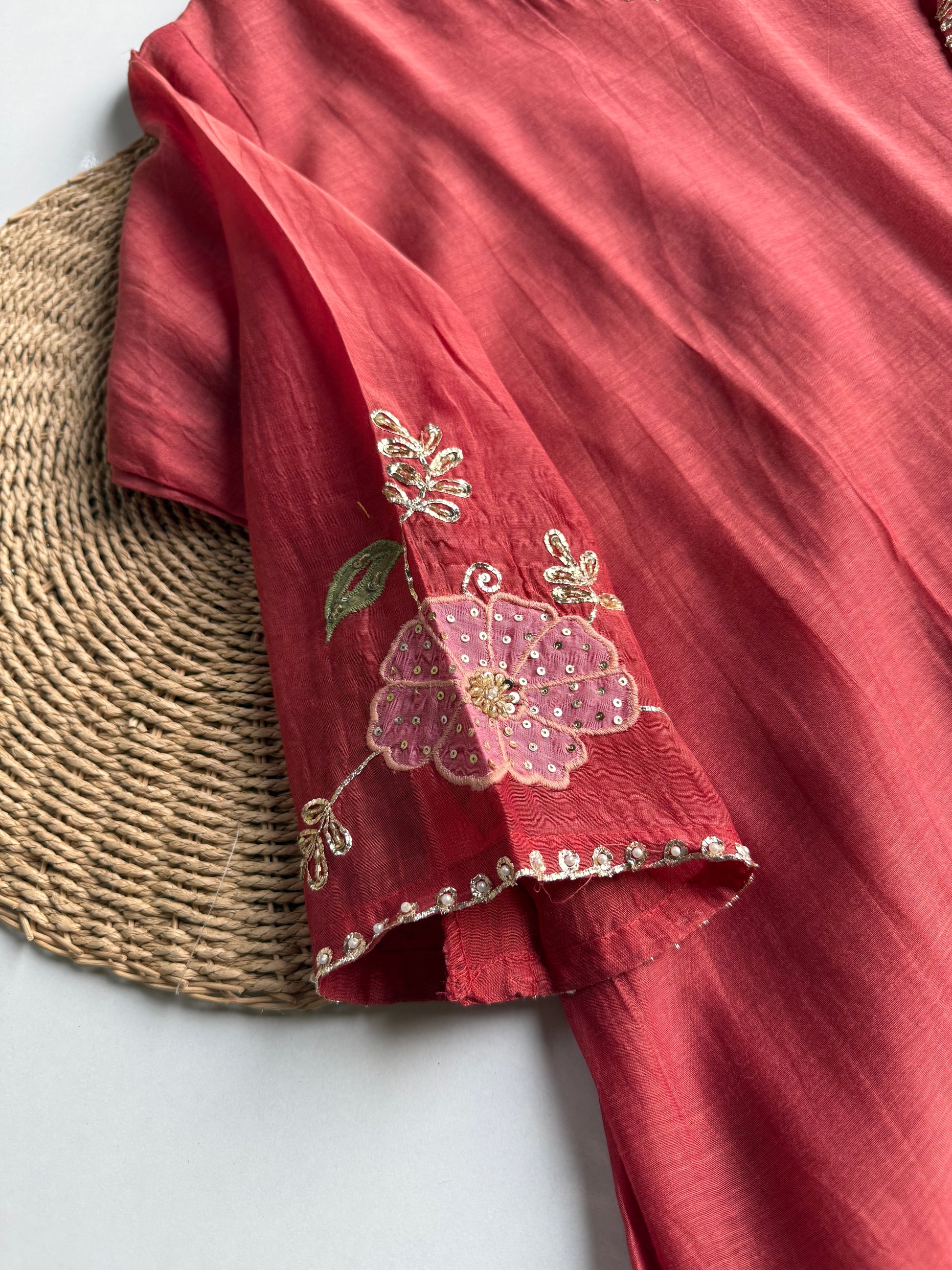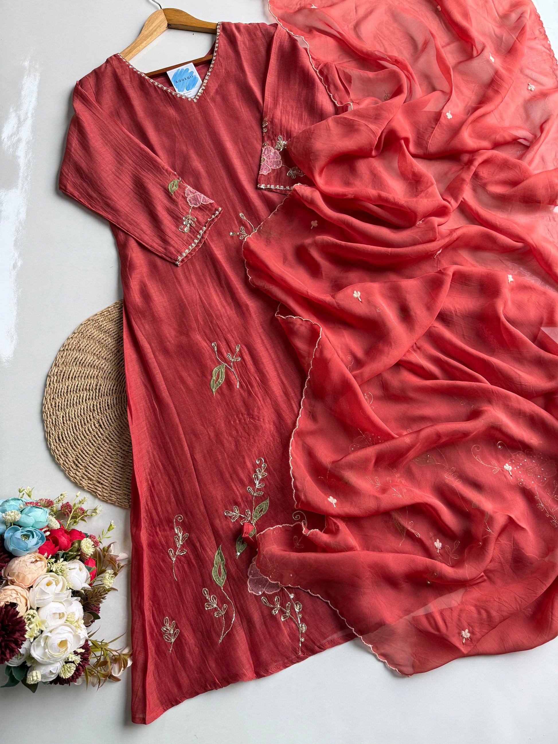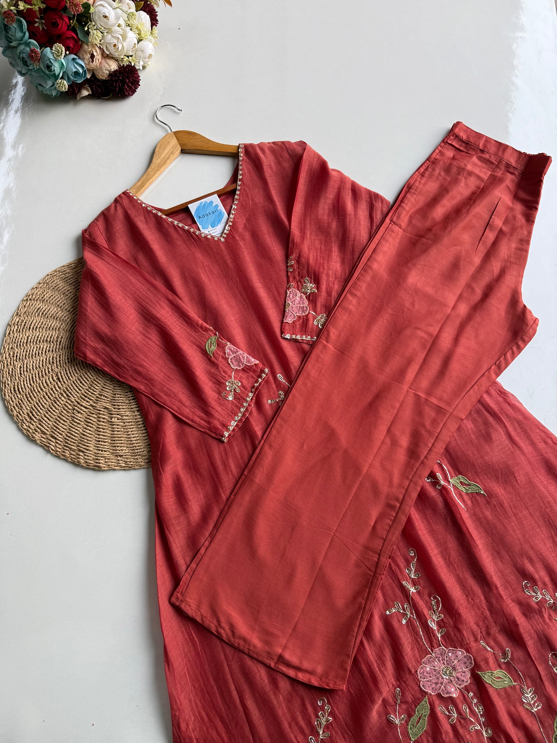 Handcrafted Mulchanderikurtaset With Pitta & Patch Work With Handwork Highlights Over The work